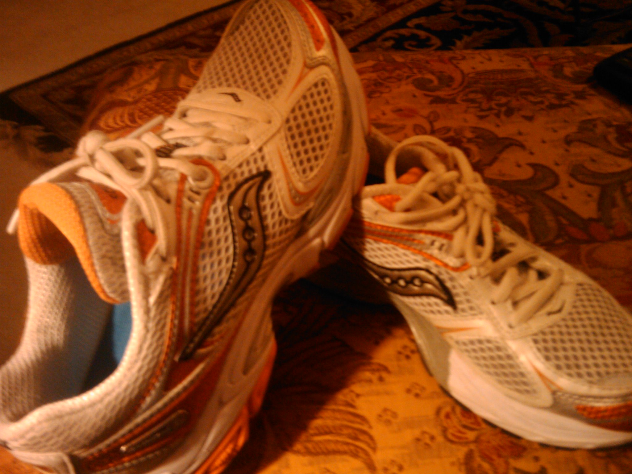 When I run in my Saucony‘s, my feet feel loved. No other tennis shoe so far does that for me. However, when I open my closet and see them staring back at me…empty, guilt racks me from head to toe. Years ago their was a Cream of Wheat ad that showed a shadowy bowl of such following the child around in a pop up bubble, who had it for breakfast – making the statement, it stayed with him all day. That is similar to the love hate relationship my shoes and I have. The bottom line though, they are the shoes I wore during the last half marathon and I will never part with them. When they wear out, I will have them bronzed…well maybe.
