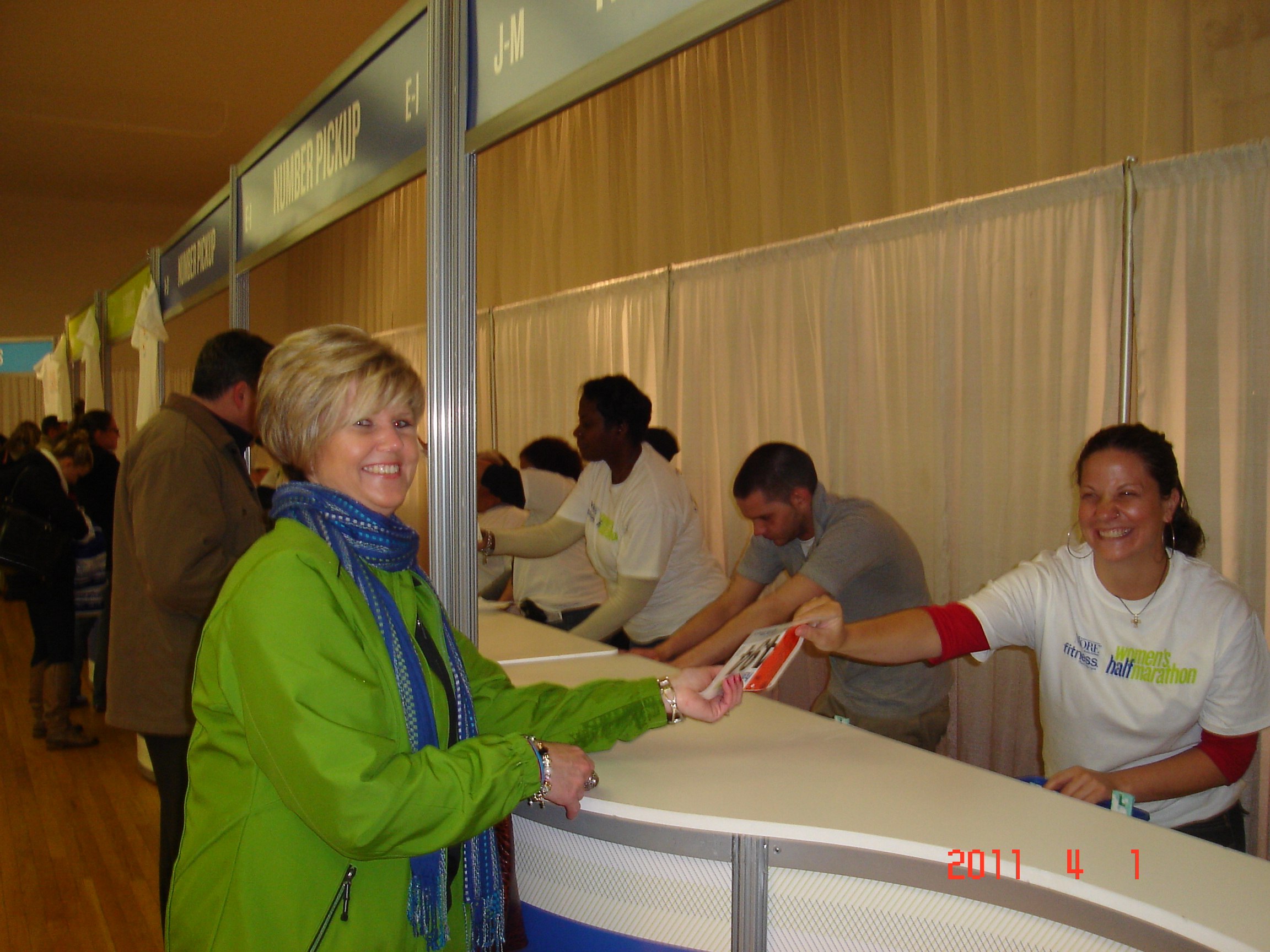 Today was the health expo and here I am below getting my race number. Last year I remember I got kind of choked up when I went in to get it. This year it wasn’t quite as momentus. Still pretty cool though. I moved up about 1200 runners from 9303 to 8127. Not bad but still pretty far back of the pack – over 10,000 registered. I got a higher number since my pace has improved.