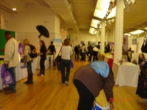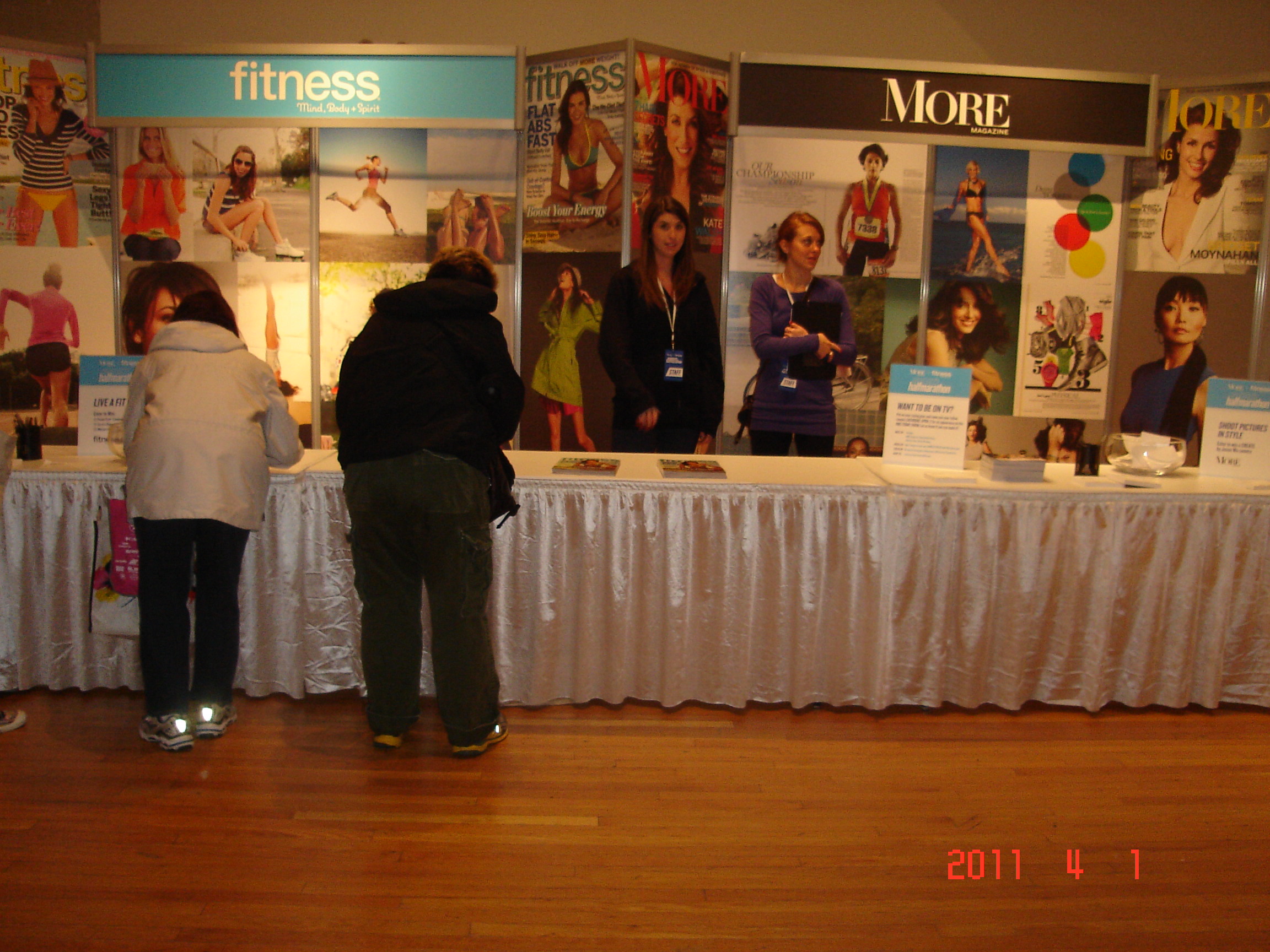 The More staff were really great to talk with and so accommodating. I chatted with them about living and working in NYC. I hope to maybe talk with them again at the Runners Dinner tomorrow night. They were pretty busy at the health expo and I think the largest part of the runners are going to be at tomorrows expo. I don’t know if they showed us on Today show or not, but going back tomorrow morning also. The More Marathon group are holding the “Thunder Stick” – long narrow neon green balloons.