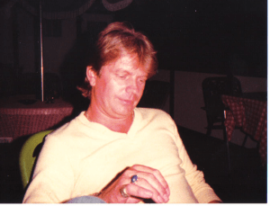 After coming home I fixed a roast, salad, and prepped some vegies and fruit.  Then Jim and I changed and headed to the 30th anniversary of “Das Stein Haus.”  A place that Jim and I spent a lot of time at early in our dating and marriage.  Our rehearsal dinner was there as well as a surprise party I had there for Jim’s birthday way back when as well as many other special occasions .  Helmut has aged as had we.  However, much of his place is the same with some expansions.  He showed us a new area he has down stairs for small parties with a bar – it was nice with many original paintings and other German touches.  He told Jim, “nothing ever changtes, I’m still cooking…” as he stood there with his apron on.  Many people were there as well with lots of fond memories of the place.  I remember my parents loved it because it was German.  They have both since passed away.  We had some dear friends that spent much time with us there.  It is a place that holds a fond place in our hearts.  We love Helmut and encourage everyone to go there if they are ever in Jefferson City.   http://www.dassteinhaus.com/ This is the link to the website.  Helmut came to the U.S.  from Vienna where he grew up.  We met his Mother at the restaurant in the late 80’s.  She was very proud of him and rightfully so.  To have a restaurant that is in business for 30 years is an acheivement.  He has struggled with economic trends and such but his life is rich from relationships and experiences that it has brought him since.  Congratulations to Das Stein Haus.  I hope we are able to go there on the 60th anniversary too.  Below is Jim, Me and Helmut from this evening.  Below is a picture we took of Helmut while we were having drinks with him in 1984 on the deck of Das Stein Hause.  Good Times!