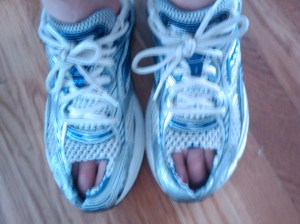 Okay, I’ve read about this till I’m blue in the face. Some even refer to the black toe nails runners get to their “badge of honor.” It’s not mine. I am going on my 11 mile run tomorrow and this is what I’m running in – with socks of course.
