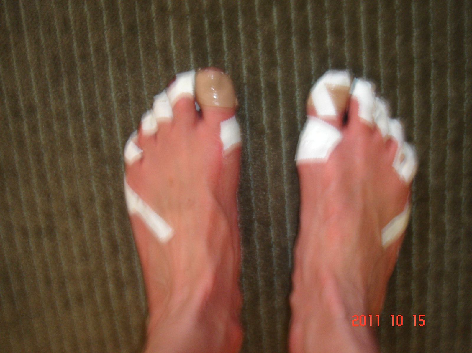 when you can’t keep your eyes open. I kept trying to send emails and would wake up holding my phone and an unfinished email would be staring me in the face. The migraine and nausea did finally subside after about 6 hours. My toes were spared the banging they took in the last half marathon, but I really taped them up. I also used some K tape on my knee which helped keep it in place. Some of the tape came loose but I just pulled that off and left the rest – worked well. It took me most of the roll to get it on correctly or at least close to such. It caused me to run late so I didn’t make the 6:25 morning prayer and team picture at Union Station. 😦 I still made it to the start of the race at 6:35 for the 7:05 start.