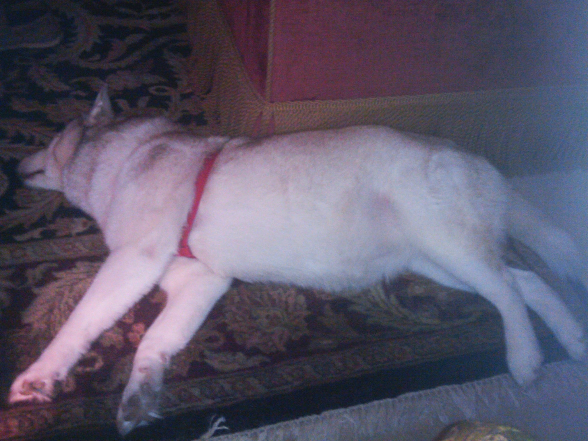 However, the doctor checked her over and thinks she has a really bad bladder infection. He gave us antibiotics and said to call him Monday. We were really relieved. Hopefully she will be up and around by tomorrow. Doing a lot of snoozing today.