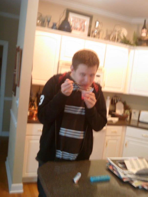 Here’s my helper – Alex. He was sneaking some Jello in between tasks last week. My shaky hands don’t take good pics.