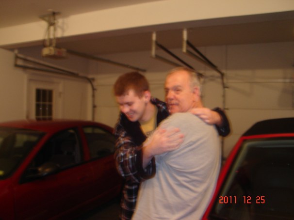 Bamm!!!! He walked into garage, turned light on then turned right around and gave us both big hugs. He was really happy.