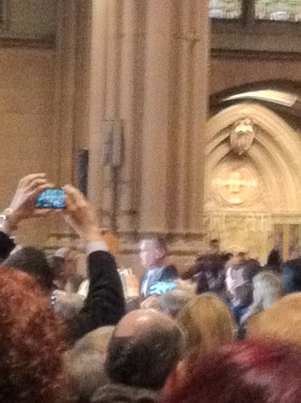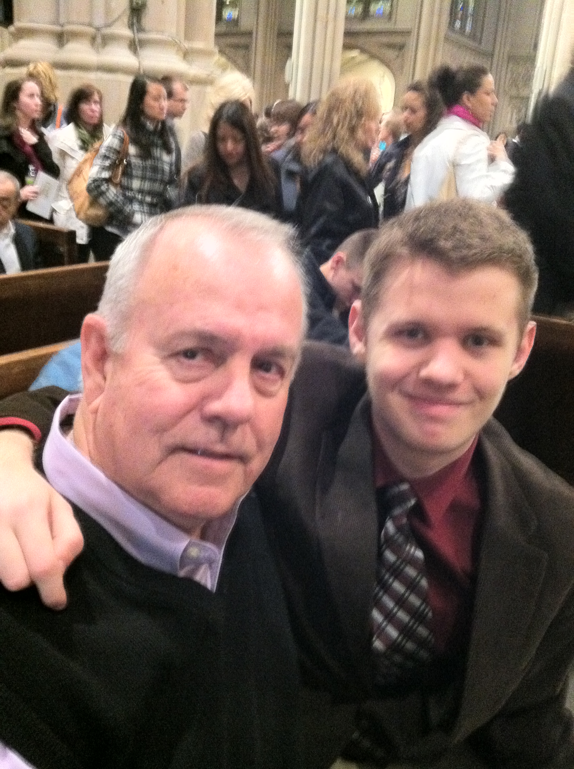 Easter in New York is wonderful. It was 70 degrees and sunny. We went to Mass at St. Patrick’s Cathedral which was really crowded. Cardinal Dolan was there and Alex tried to get a picture of him holding his camera up overhead.