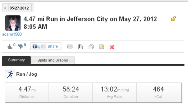 Earlier in the day I went running. I ran 3.5 miles at 12 minute average and walked 1.5 mile with an additional half mile warm up.