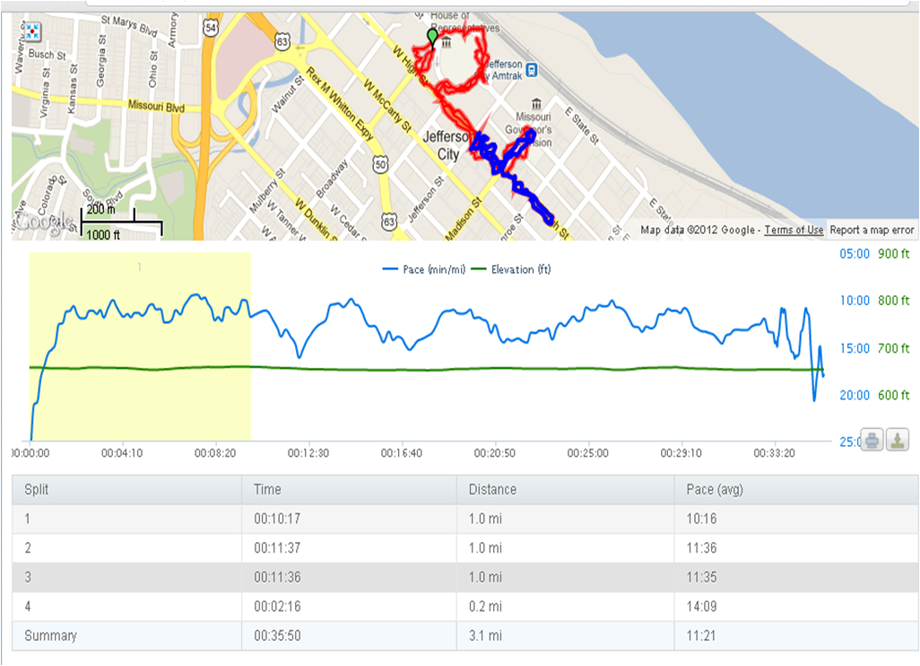 Alex and I had previously planned to do a long morning bike ride on the Katy Trail, but due to the rain last night, we opted to skip it today. He went with me on the run downtown though.