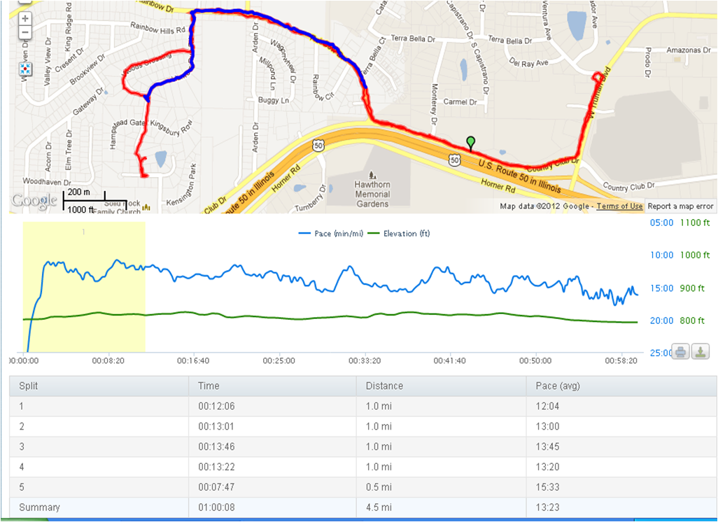 This morning was the 5 mile run. Not great but done. The half mile warm up I do before running (not included in data) will have to suffice as the missing 1/2 mile to make it 5 miles.