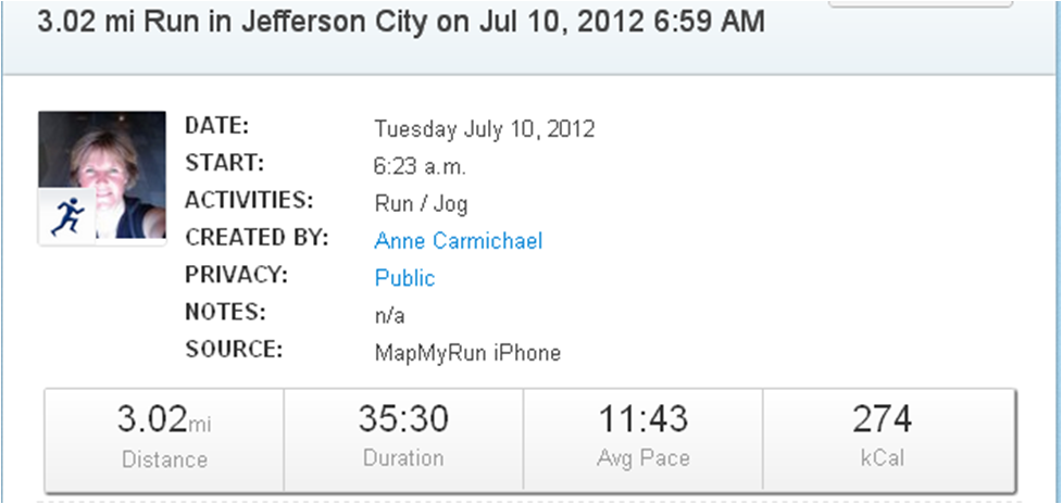 I ran 3 miles today in my Vibrams. Felt light on my feet. Focused on landing on the ball of foot and not heel. Tried to keep hips square over feet and shoulders over hips. Had plenty of energy too. Kept a decent pace (for me) – under 12 minute miles. Temp was 66 and humidity was 79%. I could have kept running but will save up for tomorrows 6 miles. No weird aches and pains.