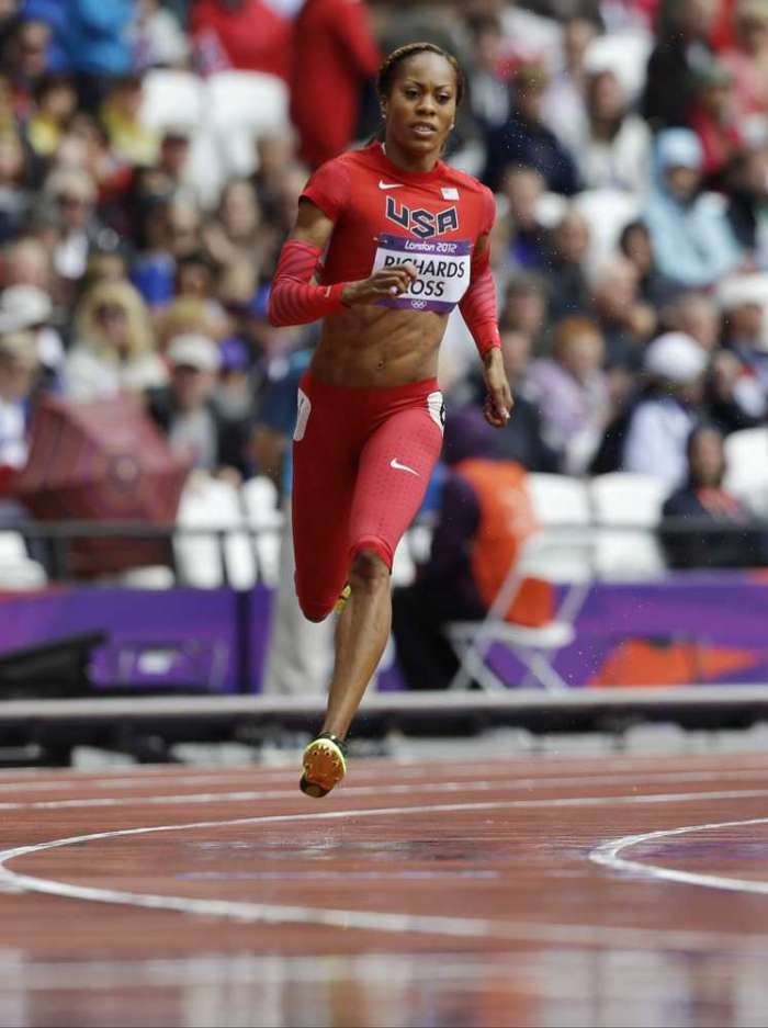 Yesterday I saw Sanya Richards-Ross win the 400 meter heat. Wow was she fast. There were several shots of her later that showed her actually in the air as she ran. I’d love to know what shoes those are she is wearing. They look like Nike with spikes. The sleeves are pretty cool too. Photo is courtesy of Ben Curtis, Associated Press.