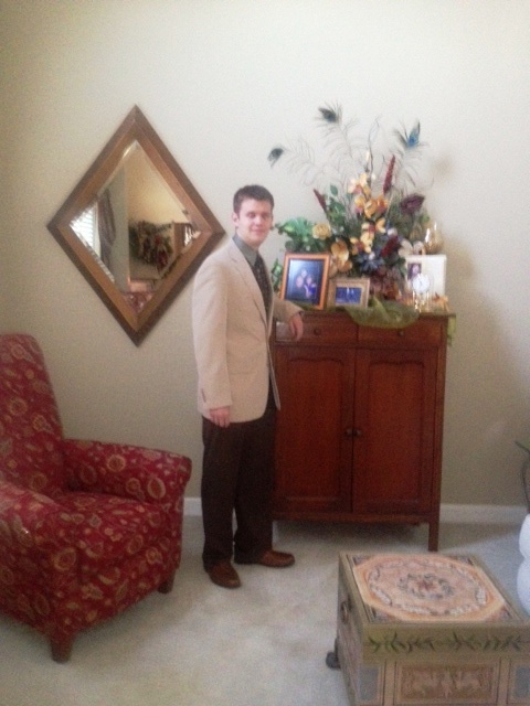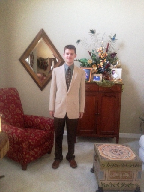 He told me to make it quick. Kind of nervous. This is picture day too. Seniors have to wear a coat and tie. Alex also gets to park in front of school now too. He and Jim drove over to school last night to find his parking spot. Only a select few seniors get that privilege. You pay for the spots and then they draw names. The rest park over a block away in a different lot.