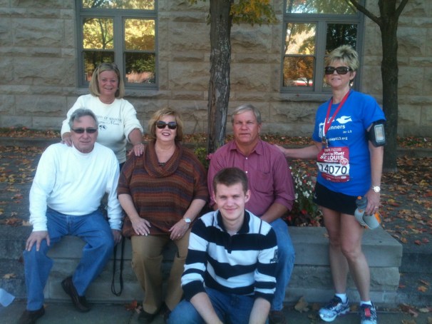 With family after race – it was hard to get up from sitting position – so I stood.