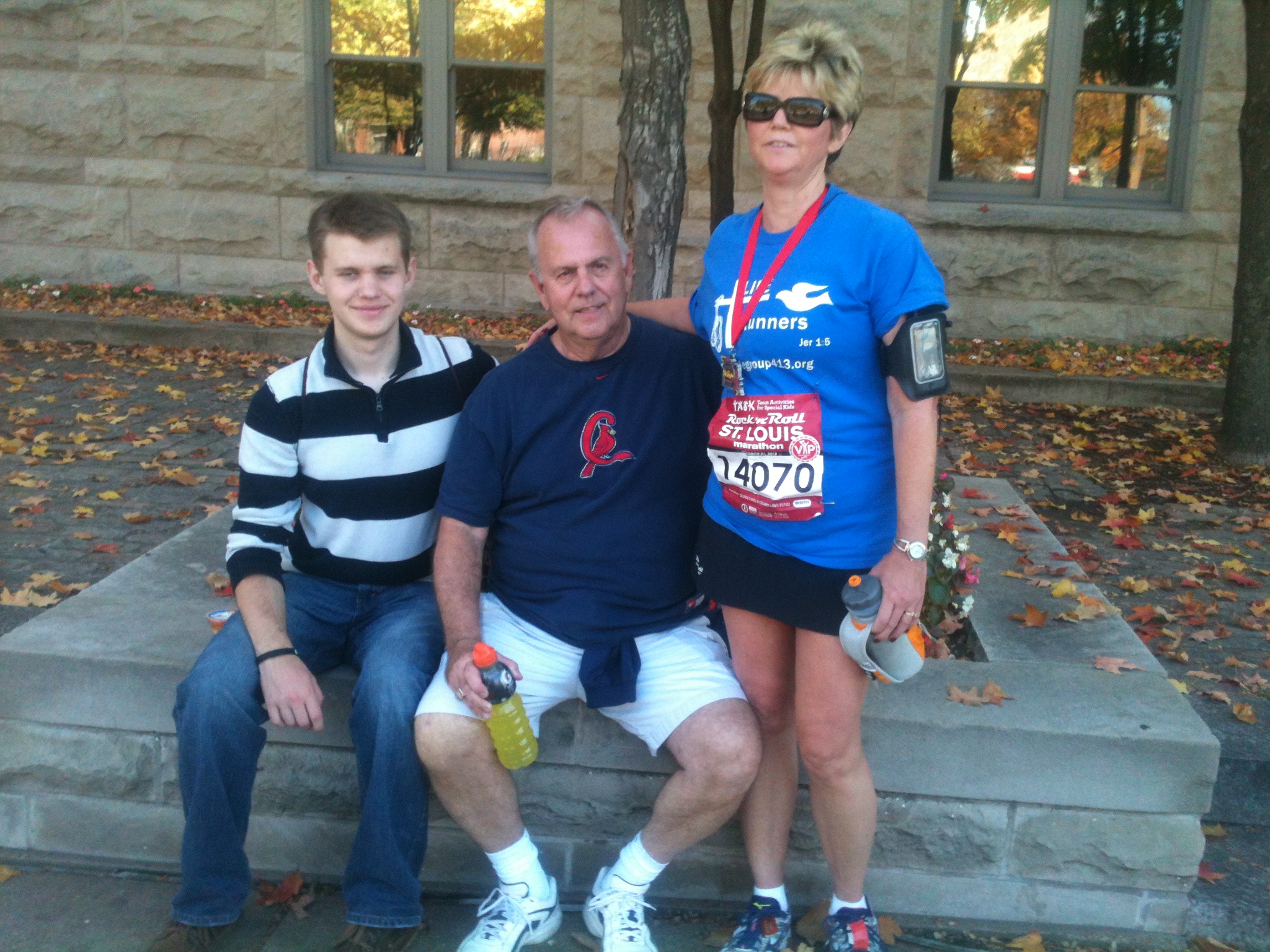 Alex is the lead percussionist in the band. Below is video of the drum-line in the parade on Friday night. Alex is in the middle of the three snare drummers in this video Jim took. Later they played at the game and then afterwards drove to St. Louis to make the race which was very early the following morning. It was a full weekend.