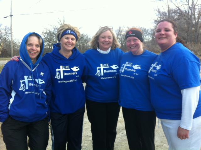 Sarah Black (my niece) and Zach Lauf (Godson and nephew) met the St. Louis LIFE Runners to start the Mid-MO Chapters portion of the Relay.  They are pictured here (Center) with St. Louis LIFE Runners as well as Bill and Kris Pauls.