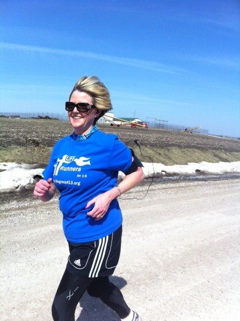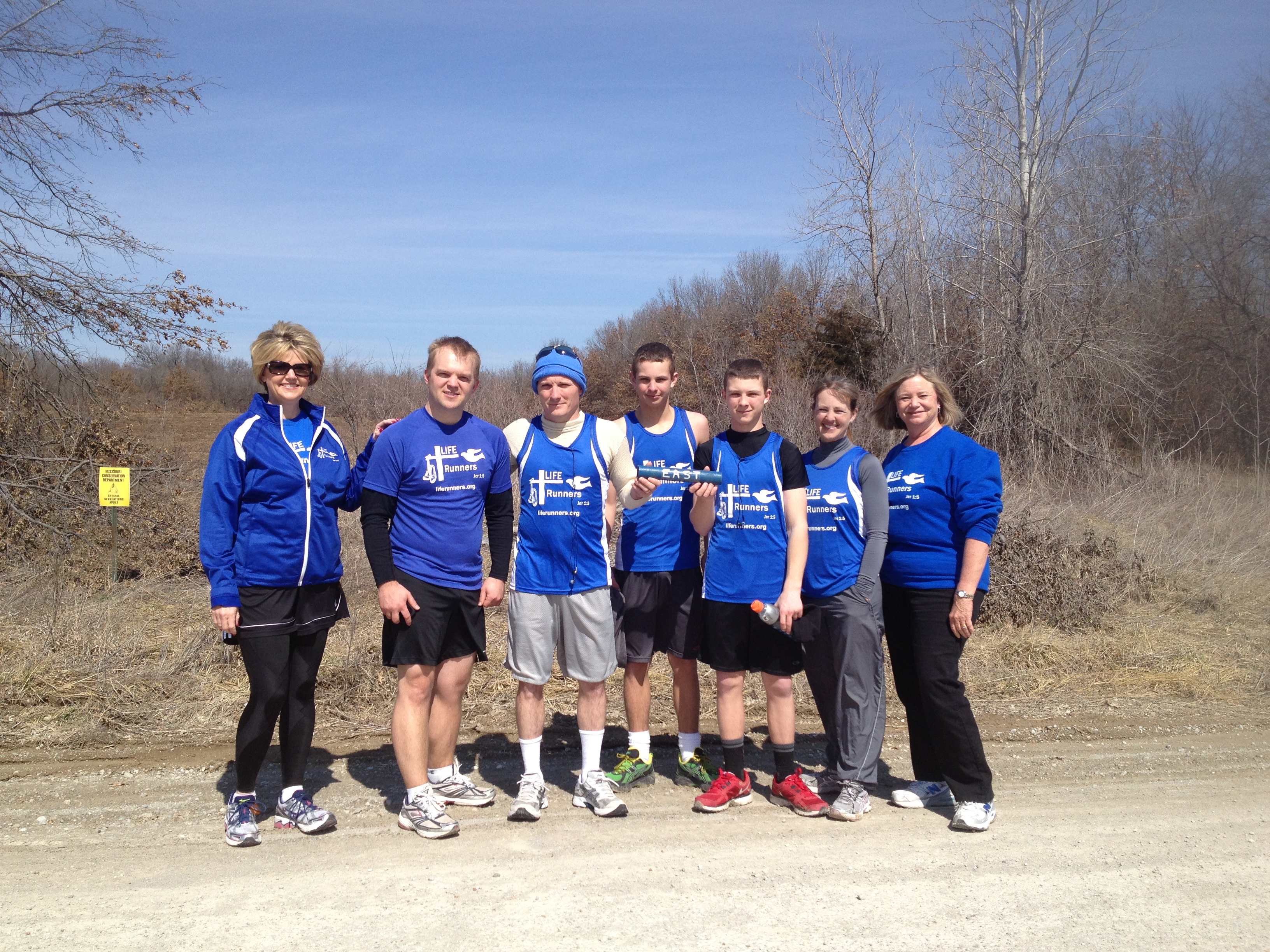 Sarah Black (my niece) and Zach Lauf (Godson and nephew) met the St. Louis runners to start our portion of the relay. They are pictured here (Center) with St. Louis runners.