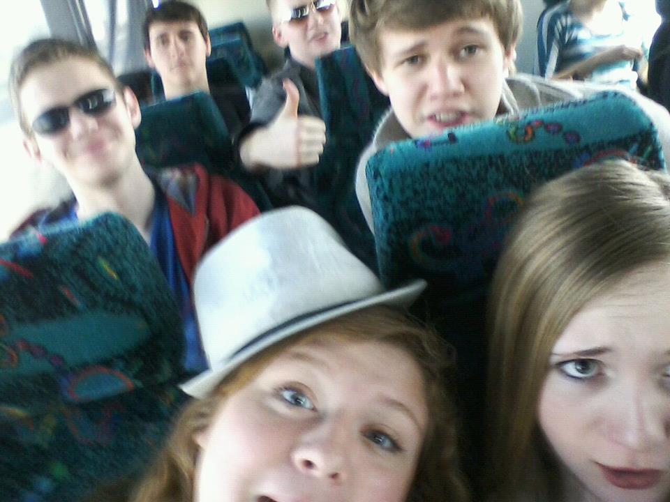 Alex (smiling, sunglasses with red jacket) on school bus trip to Chicago, earlier this year.