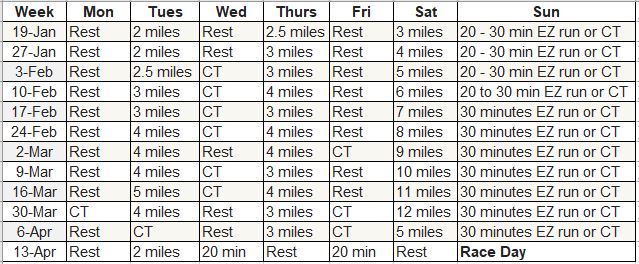 We both walked it. I am afraid to run at my current weight. So am working to lose some weight before running. My daily workout is a “no impact” session of 30 minutes on elliptical and 15 on bike. Walking fast for 3 miles really caused knees to ache afterwards also super tired all day. Going up and down stairs was hard. Now they are fine again (next day) also not so tired. Below is training schedule for the half I plan to run in April. So I need to be down 20 pounds by late January to be able to run. Then continue losing through out training, which would be another 20 pounds.